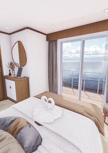 The Premium Suite on board Philippines Explorer One is the ultimate in luxury and style. The only guest cabin to be located on the bridge deck giving elevated and private views across the ocean.